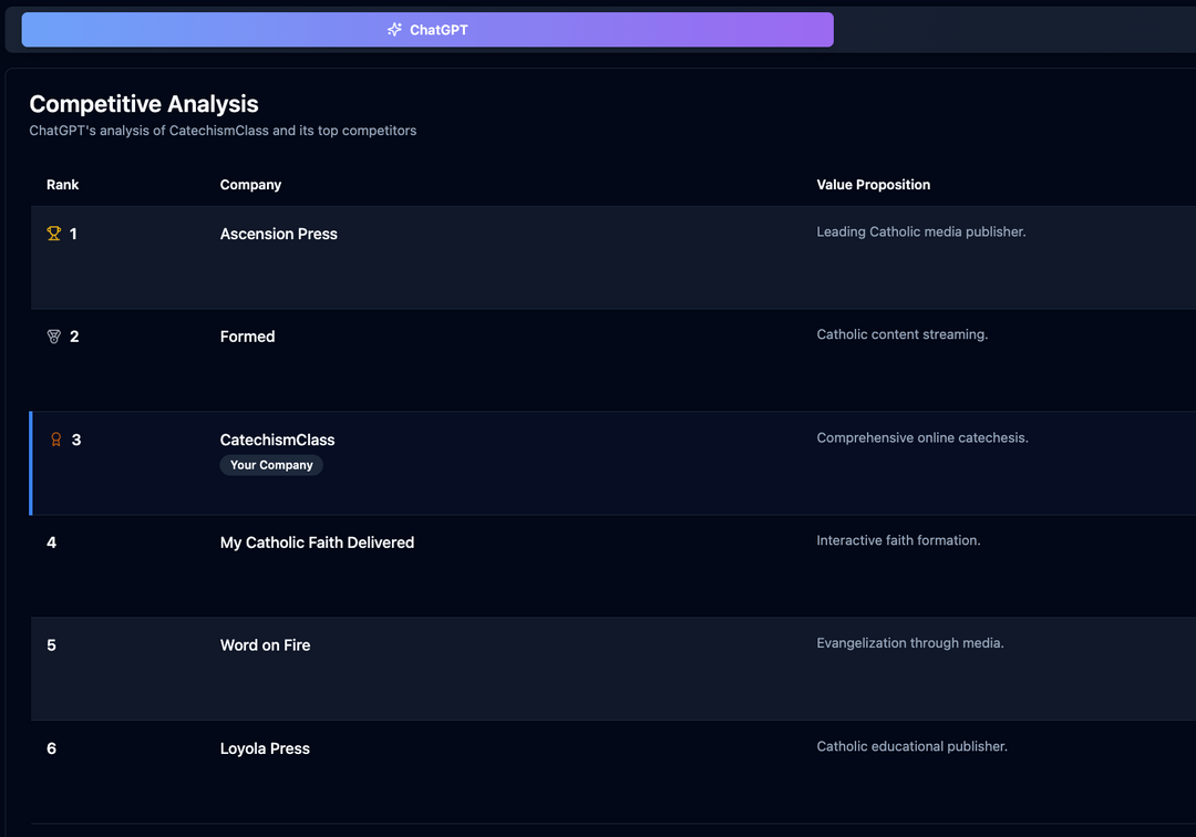 See how your business ranks compared to your competitors, according to top AI tools like Claude, Gemini, and ChatGPT.